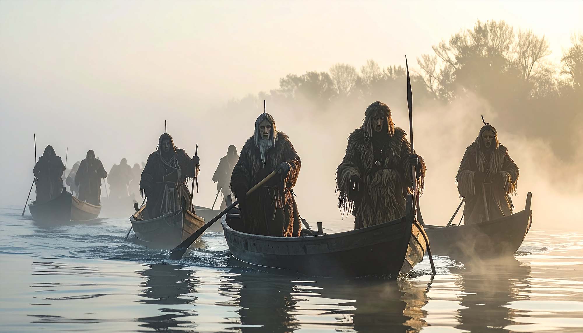 A busók ladikokon keltek át a Dunán - Fotó Melczer Zsolt - AI illusztráció