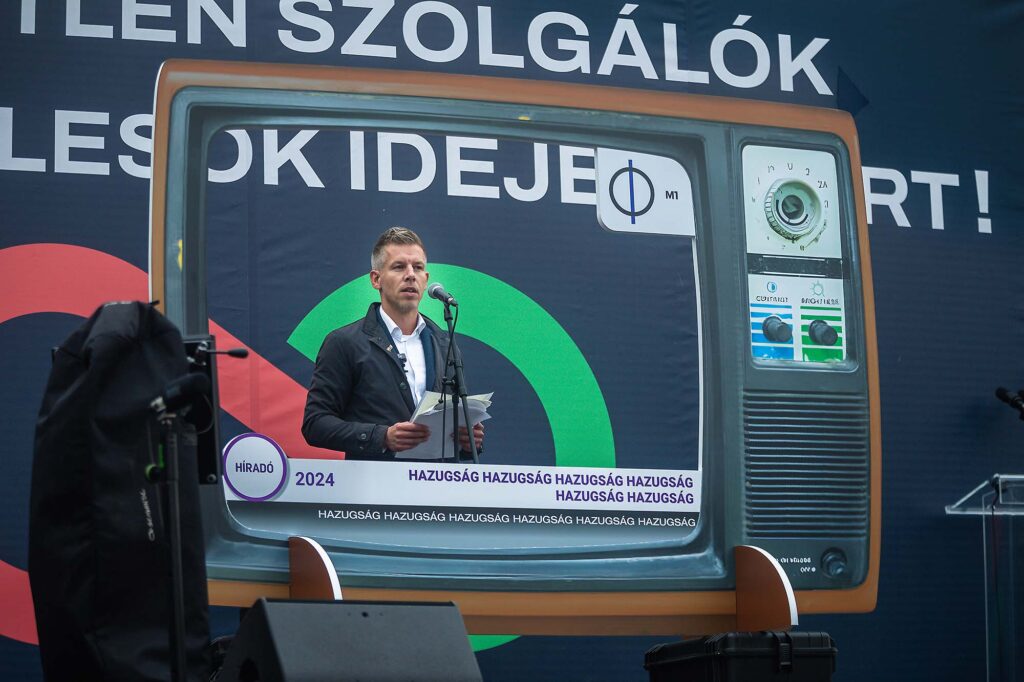 Péter egyenesen, kompromisszumok nélkül beszélt: a közmédia torz valóságképéről, az igazság manipulációjáról és a hatalomnak való teljes alárendelődéséről – fotó: Melczer Zsolt