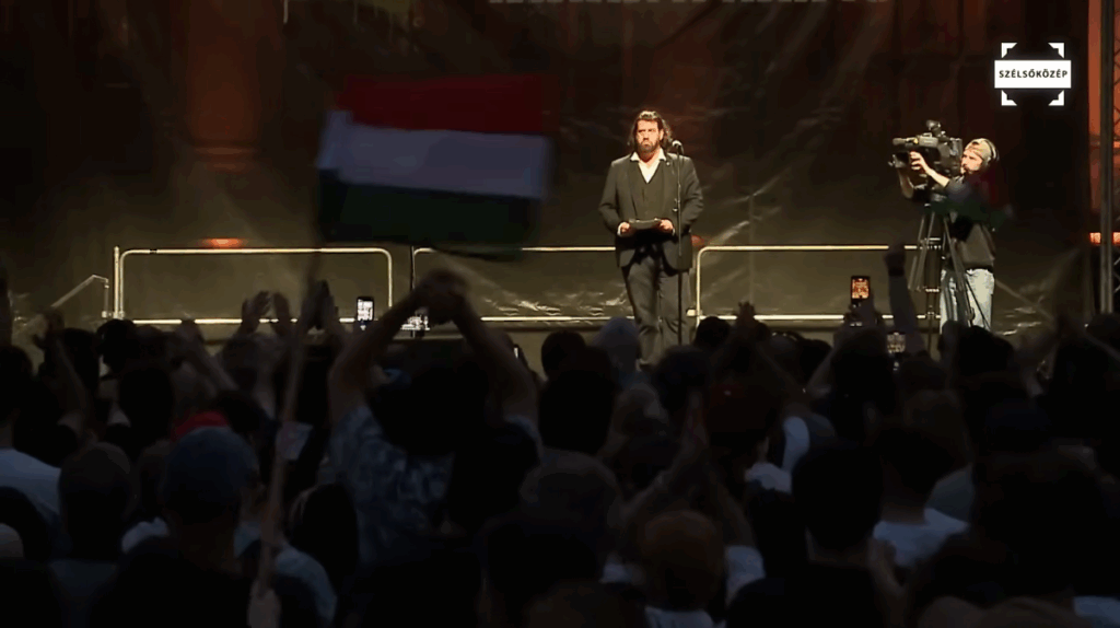 Egy polgári társadalomban nem az utcán lépnének fel. Azért léptek fel ma este, hogy egy nap Magyarország polgári társadalom legyen, és ne kényszerüljenek fel erre a színpadra többé.